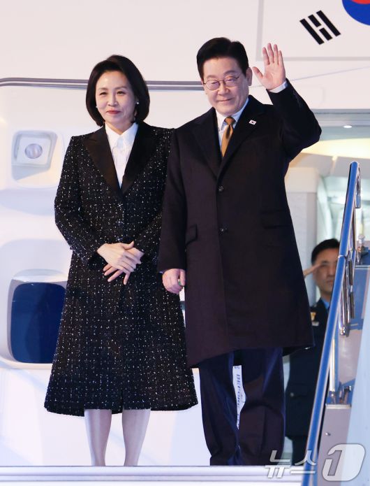 (오사카(일본)=뉴스1) 이재명 기자 = 일본 순방 일정을 마친 이재명 대통령과 김혜경 여사가 14일 오사카 간사이 국제공항에서 공군1호기에 올라 환송객들에게 인사하고 있다. 2026.1.14/뉴스12expulsion@news1.krCopyright ⓒ 뉴스1. All rights reserved. 무단 전재 및 재배포, AI학습 이용 금지.