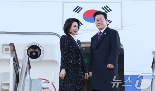 일본 순방 일정에 나선 이재명 대통령과 김혜경 여사가 지난13일 경기 성남 서울공항에서 공군1호기에 탑승하고 있다. 2026.1.13/뉴스1 ⓒ News1 이재명 기자 |