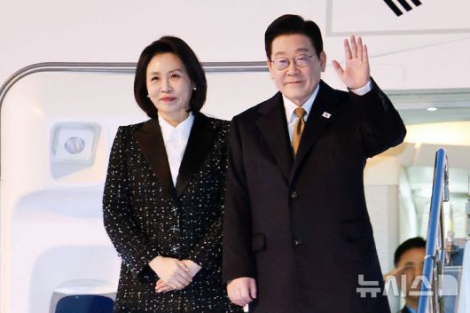 [오사카=뉴시스] 고범준 기자 = 일본 순방 일정을 마친 이재명 대통령과 김혜경 여사가 14일(현지 시간) 오사카 간사이 국제공항에서 공군 1호기에 올라 인사하고 있다. 2026.01.14. bjko@mewsis.com