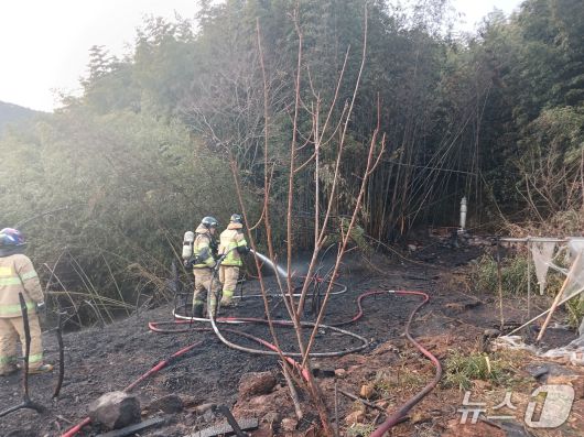 (장흥=뉴스1) 이승현 기자 = 14일 오후 4시 4분쯤 전남 장흥군 대덕읍의 한 대나무밭에서 불이 났다.