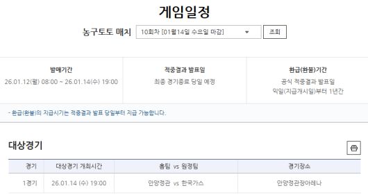 서울올림픽기념국민체육진흥공단이 발행하는 체육진흥투표권 스포츠토토의 수탁사업자 한국스포츠레저㈜가 “14일 오후 7시 안양 정관장아레나에서 열리는 2025∼2026시즌 국내남자프로농구(KBL) 정관장-한국가스공사전을 대상으로 하는 농구토토 매치 10회차의 마감이 임박했다”고 밝혔다.