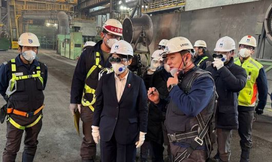 지난달 더불어민주당 을지로위원회 소속 의원들이 금속노조 충남지부 현대제철비정규직지회와 함께 현대제철 당진공장 현장 실사에 나선 모습. 금속노조 제공 |