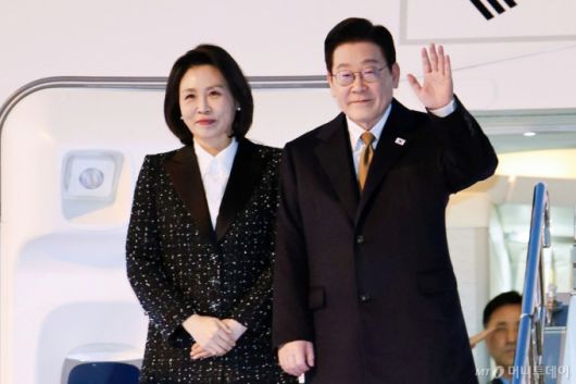 [오사카=뉴시스] 고범준 기자 = 일본 순방 일정을 마친 이재명 대통령과 김혜경 여사가 14일(현지 시간) 오사카 간사이 국제공항에서 공군 1호기에 올라 인사하고 있다. 2026.01.14. bjko@mewsis.com /사진= |