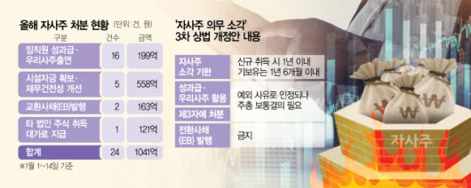 더불어민주당이 이달 중 자사주 소각을 의무화하는 3차 상법 개정안의 국회 통과에 속도를 내는 가운데 규제 부담을 피하려는 상장사들의 자기주식 처분이 올해 들어서도 이어지고 있다. 당국이 ‘꼼수’로 지적한 교환사채(EB) 발행 대신 임직원 성과보상이나 우리사주조합 출연 등 비교적 논란이 덜한 방식으로 자사주를 활용하는 기업이 많아졌다.