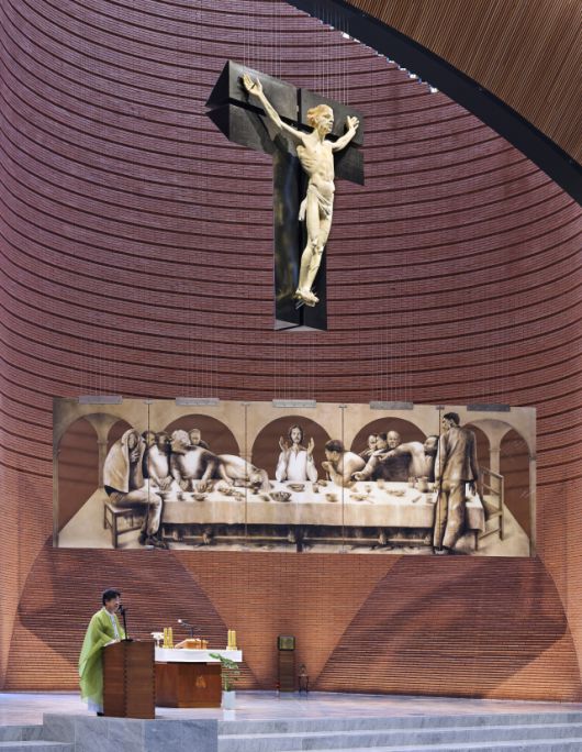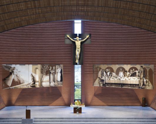이곳에서 다른 곳에서는 보기 힘든 십자가와 성화를 만날 수 있는 데도 보타의 조력이 있었다. 보타의 소개로 20세기 미켈란젤로라 불리는 조각가 줄리아노 반지가 십자가와 성화를 제작했다. 십자가에 매달린 예수는 고통에 짓눌린 모습이 아니라 젊고 생동감 있는 표정으로 성당 안을 바라본다. 죽음이 아닌 삶을 상징하는 형상이다. 이 신부는 “보타는 ‘천국에 갈 수 있도록 기도해 달라’며 설계비를 실비만 받았고, 반지 역시 재료비 정도만 받고 작품을 보내왔다”며 “신자들의 십시일반 헌금과 거장들의 선의가 모여 기적처럼 세워졌다”고 말했다.