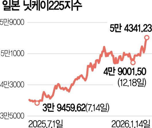 매도 압력이 완화된 배경으로는 일본 증시 환경에 대한 인식 변화가 꼽힌다. 최근 일본 증시는 조기 총선 가능성과 확장 재정에 대한 기대감을 배경으로 강세를 보이며 상승세를 타고 있다. 대표 주가지수인 닛케이225는 3거래일 연속 상승 중이며, 이날 사상 처음으로 5만 4000선을 돌파하기도 했다.