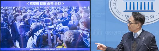 박선원 더불어민주당 의원이 12일 국회 소통관에서 지난 2024년 이재명 대통령이 민주당 대표 당시 부산 가덕도 공항 건설 예정지 방문에서 당한 피습사건 관련 기자회견을 하고 있다. [연합] |