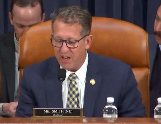 미 하원 세입위원회 무역소위 위원장인 에이드리언 스미스 공화당 의원이 13일 청문회에서 발언을 하고 있다. 미 하원 세입위원회 |