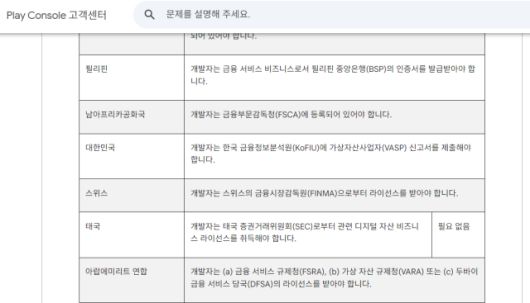 이번 업데이트의 핵심은 규제 대상 관할권 내에서 가상화폐 거래소 및 지갑 서비스를 제공할 경우 반드시 해당 국가가 인증한 요건을 충족해야 한다는 점이다. 구글은 한국의 경우 “개발자는 한국 금융정보분석원(KoFIU)에 가상자산사업자(VASP) 신고서를 제출해야 한다”고 밝혔다.