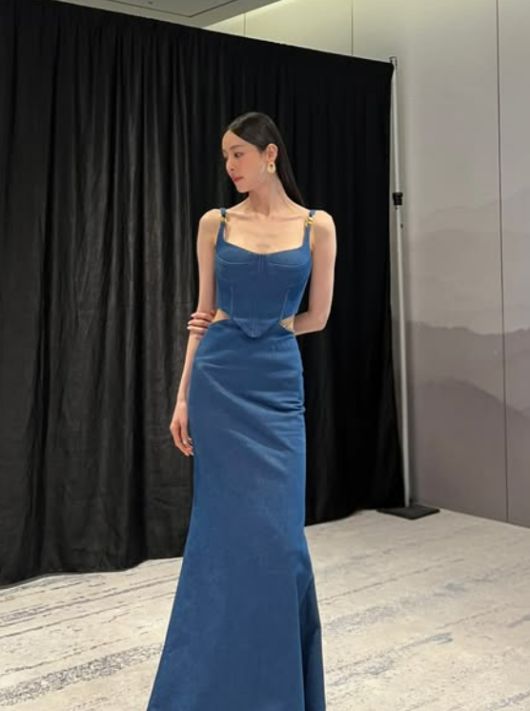 공개된 사진 속 이다희는 데님 소재의 투피스를 입고 모델다운 비율을 뽐냈다. 특히 완벽한 직각 어깨 라인과 잘록한 허리가 돋보였다.