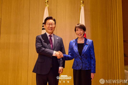 [서울=뉴스핌] 이재명 대통령이 지난 13일 일본 나라현에서 다카이치 총리와 소인수회담을 앞두고 악수를 하고 있다. [사진=청와대] 2026.01.14 photo@newspim.com