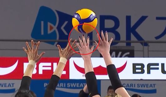 빅토리아가 시도한 공격이 카리 손가락 위를 지나가는 장면.캡쳐 | SBS스포츠 |