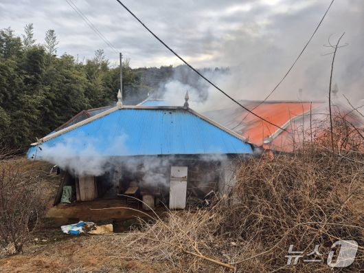 (당진=뉴스1) 최형욱 기자 = 14일 오후 1시 7분께 충남 당진 석문면 삼화리의 한 단독주택에서 불이 났다.