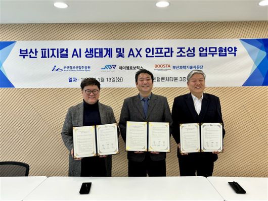 부산정보산업진흥원은 지난 13일 제이엠로보틱스, 부산과학기술자문단과 '부산 피지컬 AI 생태계 및 AX 인프라 조성'을 위한 업무 협약(MOU)을 체결했다고 밝혔다.