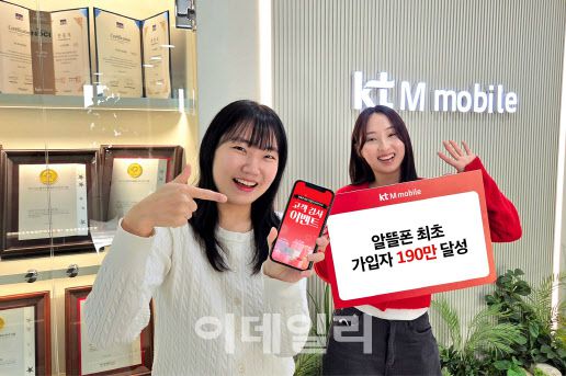 [이데일리 윤정훈 기자]KT(030200)엠모바일은 국내 알뜰폰 사업자 최초로 가입자 190만 명을 달성했다고 14일 밝혔다.