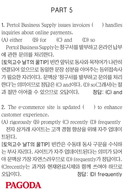 [파고다 강남 끝토익 RC김나래] PART 5