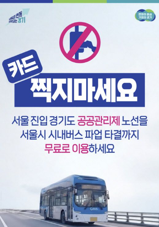 [이데일리 김연지 기자] 경기도는 서울 시내버스 파업에 따른 도민 불편을 줄이기 위해 서울로 진입하는 공공관리제 시내버스 28개 노선 351대를 15일 첫차부터 무료로 운행한다고 14일 밝혔다.