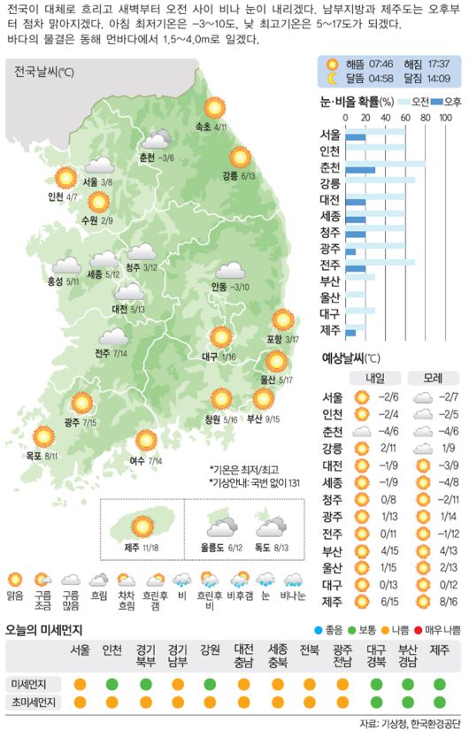 [15일의 날씨] 한낮 온화 …살얼음 '사르륵'