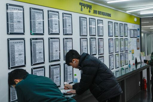 서울 마포구 서울서부고용복지플러스센터에서 구직자들이 일자리 정보 게시판 앞에서 이력서를 작성하고 있다. 지난해 전체 고용률은 역대 최고를 기록했지만, 15∼29세 청년층 고용률은 코로나19 사태 이후 3년 연속 하락세를 이어가고 있다. 최상수 기자 ⓒ 세상을 보는 눈, 세계일보