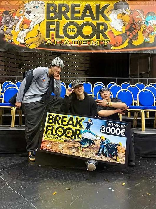 [OSEN=장우영 기자] 진조크루가 프랑스 칸의 브레이킹 대회 20주년 배틀에서 우승 세리모니를 펼쳤다.