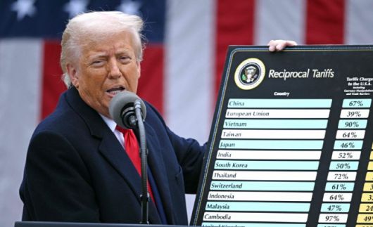 지난해 4월 국가별 상호관세 발표하는 트럼프 대통령 /AFP 연합