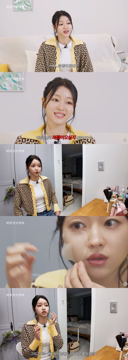 유아는 이른 아침에도 붓기 없는 작은 얼굴과 맑은 피부를 자랑했다. 이에 제작진이 감탄하자, 그는 "어제 좀 많이 잤다. 원래 제가 일찍 자는 타입이 아닌데 오늘 촬영 신나게 놀려고 밤 10시에 잤다. 원래 절대 그게 불가능한 타입인데 일찍 잤다"라며 겸손하게 웃었다.