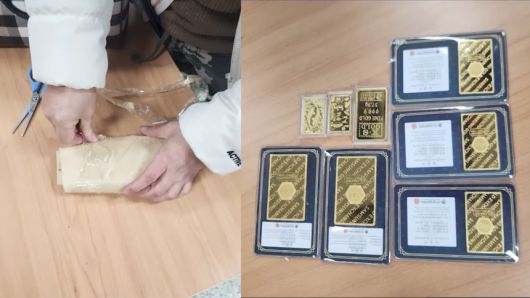 지구대에 방문한 A씨가 가져온 1억원 어치 순금의 모습. [대한민국 경찰청 유튜브] |