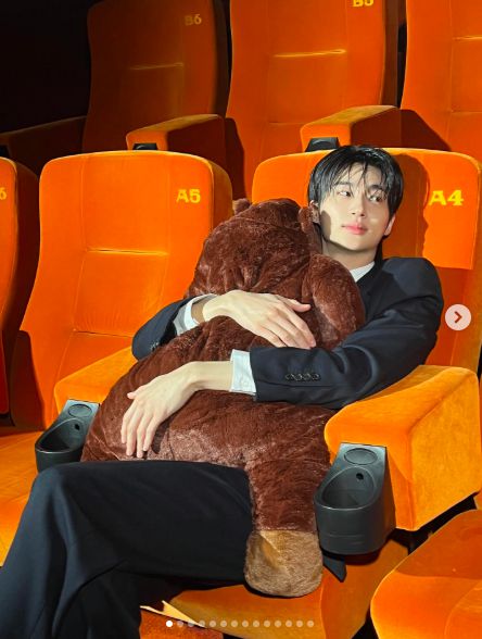 사진 속 변우석은 블랙 슈트를 입고서 인형을 꼭 끌어안고 영화관 의자에 앉아 포즈를 취하고 있다. 이어 쭈구려 앉은 자세를 취해 웃거나 팔짱을 끼는 등 다채로운 매력을 뽐냈다.