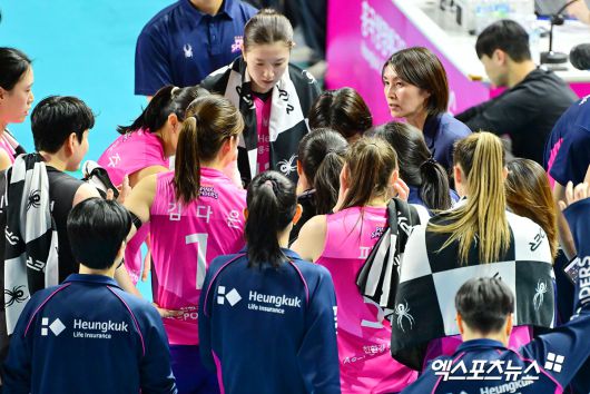 (엑스포츠뉴스 인천, 김한준 기자) 14일 오후 인천 부평구 삼산월드체육관 열린 '진에어 2025-2026 V-리그' 흥국생명과 한국도로공사의 경기, 흥국생명 요시하라 토모코 감독이 작전타임을 갖고 있다.김한준 기자 kowel@xportsnews.com