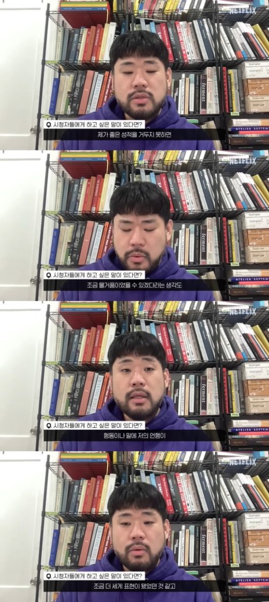 그는 "이 촬영에서조차 좋은 성적을 거두지 못하면 지금까지의 노력이 물거품이 될 수 있다는 생각에 매우 절박하고 간절했다"며 "그런 절박함 때문에 행동이나 말에 있어 언행이 조금 더 세게 표현됐던 것 같고, 그것이 보시는 분들께 불편함을 드렸던 것 같다"고 고개를 숙였다.