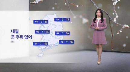 내일 서울 아침 기온 3도, 대전 5도, 부산은 9도로 평년 수준을 많게는 10도 이상 크게 웃돌겠고요.