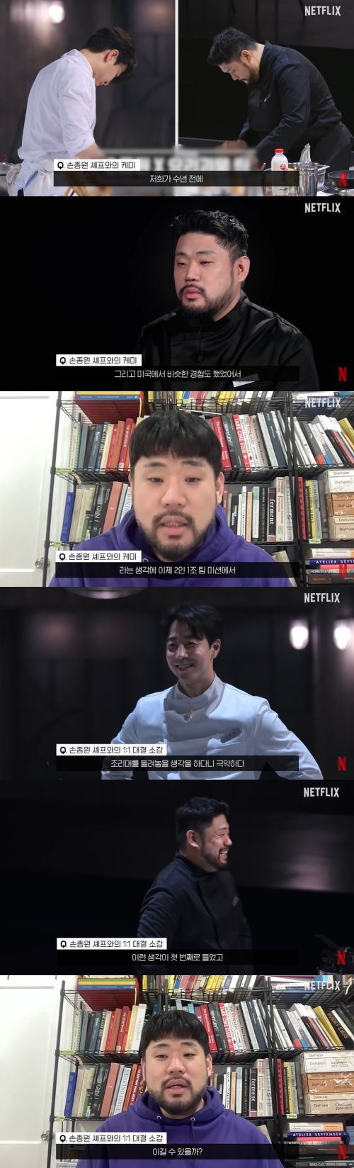 "손종원 셰프와 1대1 대결 소감이 어땠나?"라고 묻자, 요리괴물은 "일단 첫 번째로 '와 넷플릭스 제작진 분들 정말 대단하시구나. 조리대를 돌려놓을 생각을 하다니 극악하다'고 느꼈다. 이런 생각이 첫 번째로 들었고, 두 번째는 그때도 그렇고, 지금도 그렇고 너무 잘하시는 셰프님이고 지금 너무 폼이 좋은 분이신데 '이길 수 있을까?' 이런 생각도 들었다. 동시에 또 위로 올라간다면 언젠가는 또 만나야 되는 상황이 생길 거니까 내가 주어진 대로 잘 준비해야 되겠다라는 생각이 들었다"고 털어놨다.
