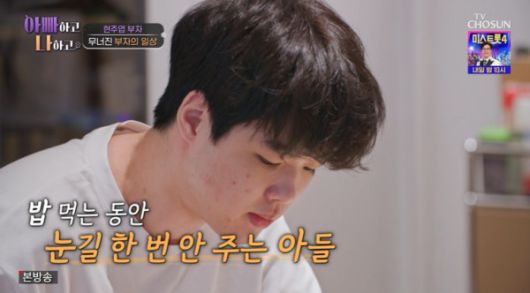 현주엽은 식사를 준비해 준희 군과 함께 밥을 먹었다. 하지만 아들은 먹는 내내 아버지의 눈도 마주치지 않았다. 준희 군은 "많이 힘들었다. 아버지와 마주친 적이 거의 없었다. 솔직히 왜 이제 와서 이러나 싶기도 하다"고 속마음을 전했다.