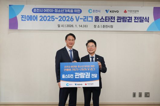 [스포츠투데이 신서영 기자] 한국배구연맹이 춘천시 지역 저소득층 어린이, 청소년들에게 프로스포츠 문화 체험을 제공하기 위한 진에어 2025-2026 V-리그 올스타전 관람권 전달식을 진행했다고 14일 밝혔다.