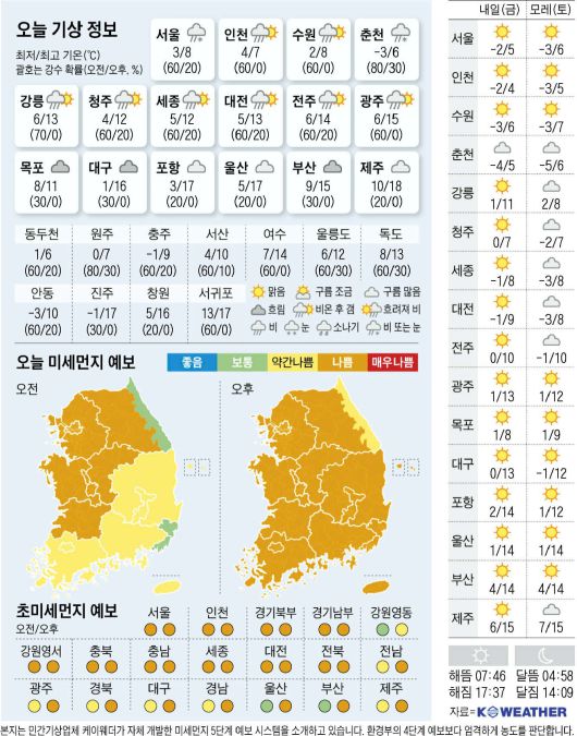 전국 흐리고 곳곳 눈·비