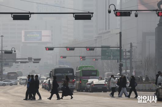 서울 광화문광장 일대가 뿌연 모습을 보이고 있다. ⓒ고성준 기자 |