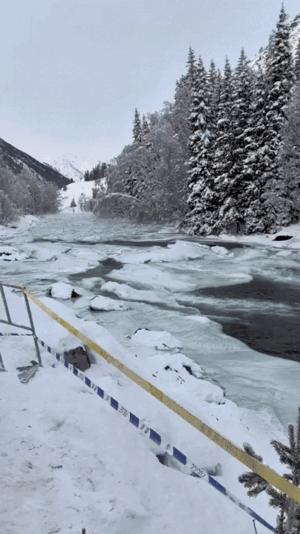 지난 6일 소셜미디어 엑스와 지무뉴스에 따르면 전날 오후 중국 신장 웨이우얼 자치구 소재 관광 명소 카나쓰강의 한 구간에는 많은 양의 얼음덩어리들이 강물과 함께 쏟아져 내려왔다.