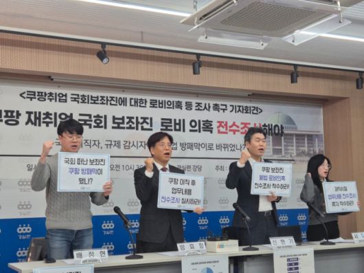 서휘원 경실련 정치입법팀장은 "국회 공직자가 퇴직 후 가장 많이 이직하는 곳이 쿠팡으로 나타났다"며 "이들이 퇴직 전 업무와의 연관성을 위반하고 국회의 인맥을 동원해 부정한 청탁·정보입수 행위를 하고 있지 않은지 철저한 조사를 촉구한다"고 설명했다.