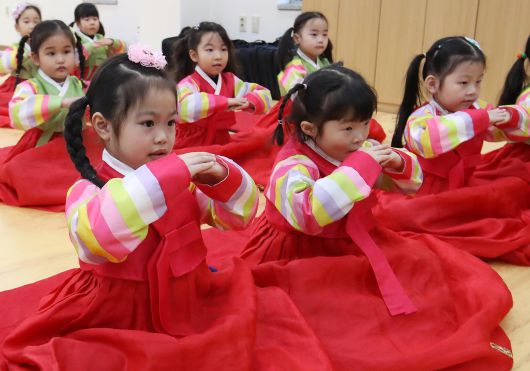14일 부산 동래구 충렬사 안락서원 교육회관에서 어린이 전통 예절 교실이 열렸다. 한복을 곱게 차려 입은 유치원생들이 큰절하는 법을 배우고 있다. 부산=뉴스1 Copyright Ⓒ 동아일보. All rights reserved. 무단 전재, 재배포 및 AI학습 이용 금지