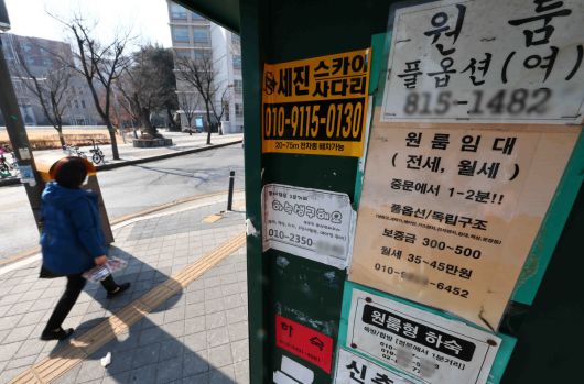 서울 소재의 한 대학가 게시판에 원룸 월세 안내문이 붙어 있다. |