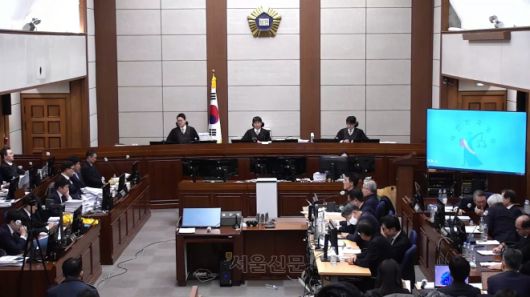 12·3 비상계엄 관련 내란 우두머리 혐의로 기소된 윤석열 전 대통령과 내란 중요임무 종사 혐의를 받는 김용현 전 국방부 장관 등이 13일 서울 서초구 서울중앙지방법원 417호 형사대법정에서 열린 윤 전 대통령의 내란 우두머리 혐의 결심공판에 출석해 있다. 서울중앙지법 제공 |