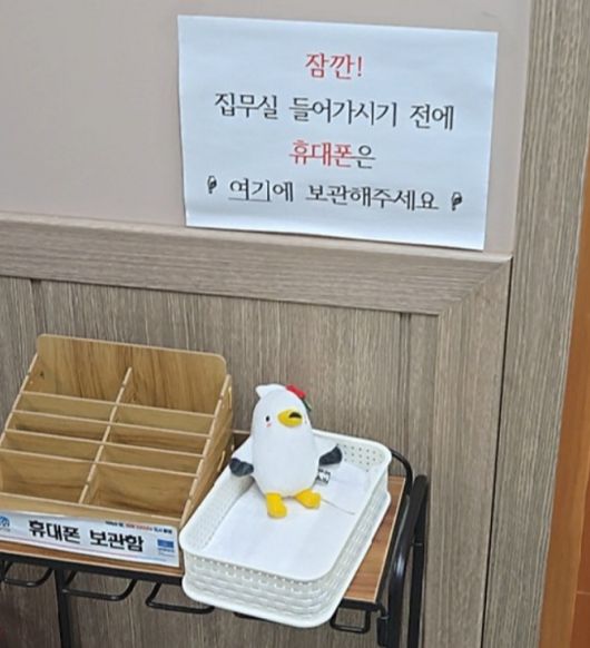 경남 통영시 시장실 앞 비서실에 설치된 휴대전화 보관함 모습. /사진=통영시민참여연대 |
