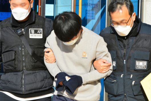 지난해 12월 집에서 잠자던 모친을 둔기 등으로 살해한 30대 남성이 청주지법에서 구속 전 피의자 심문(영장실질심사)을 받은 뒤 나오는 모습. /사진=뉴시스 |