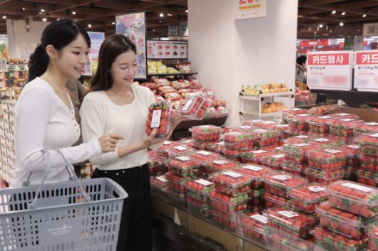 이마트는 21일까지 일주일간 ‘신선 그대로 딸기’를 신세계포인트 적립 시 정상가보다 3000원 할인한 7980원에 판매한다. 같은 날부터 28일까지는 딸기를 활용한 베이커리, 아이스크림, 음료, 과자 등을 대상으로 행사가 진행된다. 이마트 내 베이커리에서는 ‘떠먹는 논산딸기 케이크’를 2000원 할인한 7980원에, ‘논산 딸기크림 단팥빵’은 1000원 할인한 6980원에 구매할 수 있다.