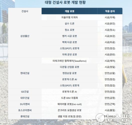 대형 건설사 로봇 개발 현황 [AI 그래픽=정영희 기자] |