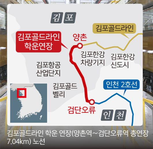 14일 김포시에 따르면 김포공항역∼양촌역 23.6㎞ 구간을 운행 중인 도시철도 골드라인은 최근 인천지하철과 연결될 신호탄이 쏘아 올려졌다. 이번 학운 연장안이 제2차 경기도 도시철도망 구축계획(2026∼2035년)에 반영된 것이다. 기존 양촌역에서 인천 2호선 검단오류역 노선을 잇는 사업으로 총연장 7.04㎞, 7395억원 규모다. 향후 약 9분이면 두 지역 간 방문이 가능해지게 된다.