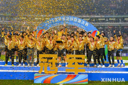 [창사(중국)=신화/뉴시스]중국 융저우 지역축구팀이 2025 후난성 축구 리그에서 우승을 차지했다. 2025.12.27. |