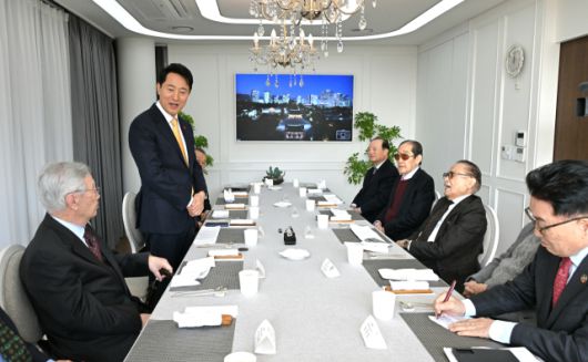 ▲오세훈 서울시장이 12일 서울 한남동 파트너스하우스에서 국민의힘 상임고문단과 신년간담회를 하고 있다. ⓒ연합뉴스 |