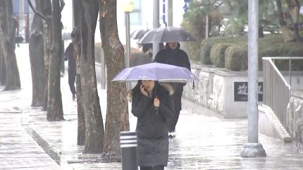 대부분 비로 내리는 가운데, 강수량은 5mm 미만으로 적겠고요. 기온이 낮은 강원 영서 지역은 1cm 안팎의 눈으로 내려 쌓이겠습니다.