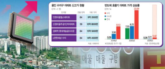 용인 수지 아파트가 반도체 기업들의 호황으로 상승 랠리를 펼치고 있다. 반도체 기업 임직원들의 주택 수요가 용인 수지로 확산하는 가운데 공급 부족에 리모델링 이주 수요까지 맞물리면서 수지구 부동산 시장의 강세는 당분간 지속될 것으로 전망된다.